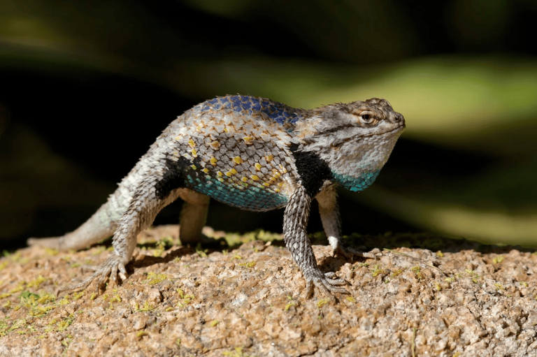 The reconstruction of H. dongi by Fabio Manucci was commissioned for the press release of the paper and thus has become the template for all future H. dongi paleo-art. In it we see a fairly fuzzy ornithopod, with distinct spines jutting out from around the torso region. This interpretation seems strange given what is described in the paper about the remarkably small size of these spikes. The longest spikes associated with the specimen were only 4.4 cm in length. These tiny distances wouldn’t really be all that visible on an animal the size of H. dongi. Instead, the torso region may have had a jagged look, but one wouldn’t be able to make out more than that. For comparison, below is an image of a Western Fence Lizard (Sceloporus magister) that also has a bunch of little spines covering its body. Can you see them very well here?